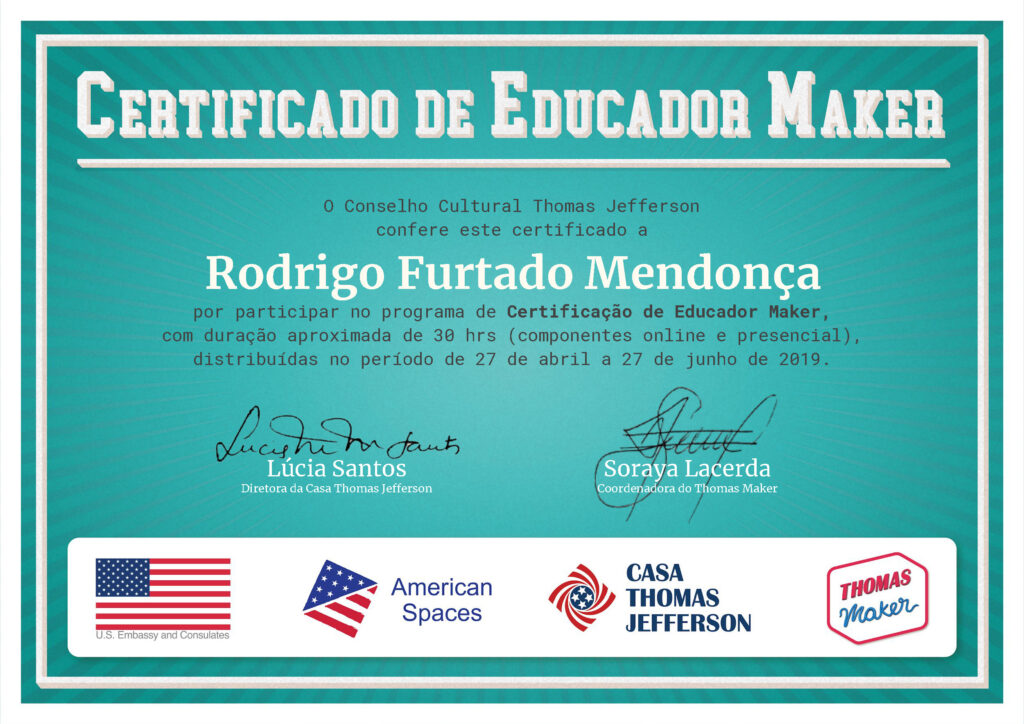 Certificação de Educador Maker pelo Conselho Cultural Thomas Jefferson