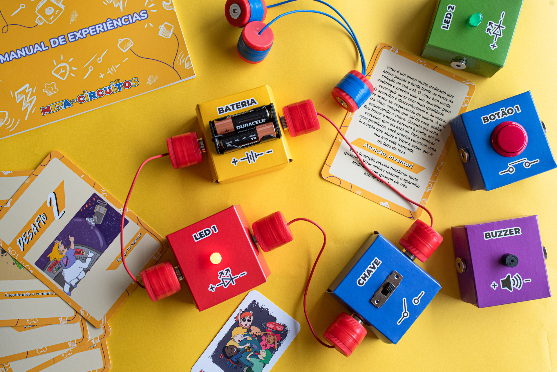Desenvolvimento de kits e experiências pedagógicas utilizando papelão e o kit Meta-Circuitos para escolas, fablabs e espaços maker.