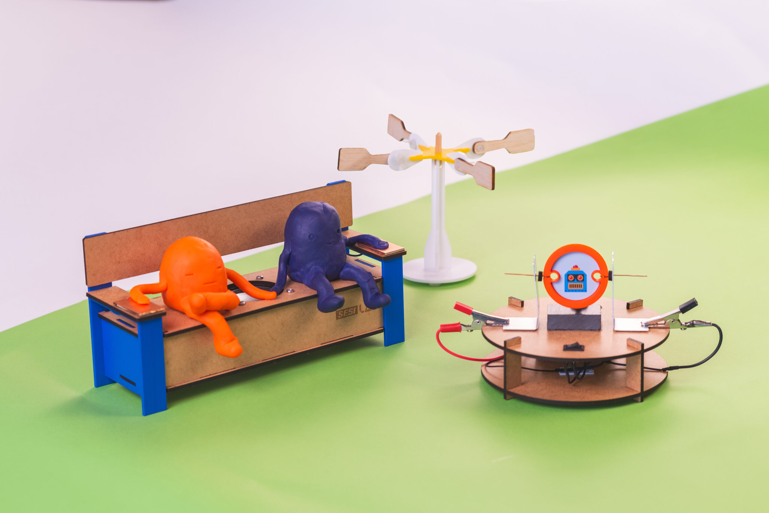 Criação do kit pedagógico Energia Em Movimento para o projeto piloto SESI Lab nas Escolas, contemplando a reprodução em miniatura de três aparatos do museu com a proposta de levar a experiência do SESI Lab para escolas do Sistema S, em todas as 27 Unidades da Federação.